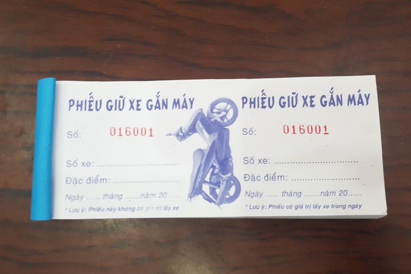Phiếu giữ xe máy bìa xanh